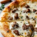There’s something undeniably special about a dish that takes familiar flavors and twists them into an exciting new form. This Amazing Crispy Crust Sausage & Gravy Pizza is more than just a recipe; it’s an experience. It bridges the gap between comforting breakfast classics and the universally loved joy of pizza, creating a dish that feels both nostalgic and refreshingly innovative. The moment you pull this golden-brown beauty from the oven, with its bubbly cheese and fragrant savory aromas, you’ll understand. From the delightful crispness of the crust, achieved with careful preparation and a hot oven, to the creamy, perfectly seasoned gravy, and the tender, flavorful ground turkey sausage, every element works in harmony. It’s practical for home cooks, impressive for guests, and truly a culinary adventure. Give this unique pizza a try, and prepare to add a new favorite to your recipe repertoire.