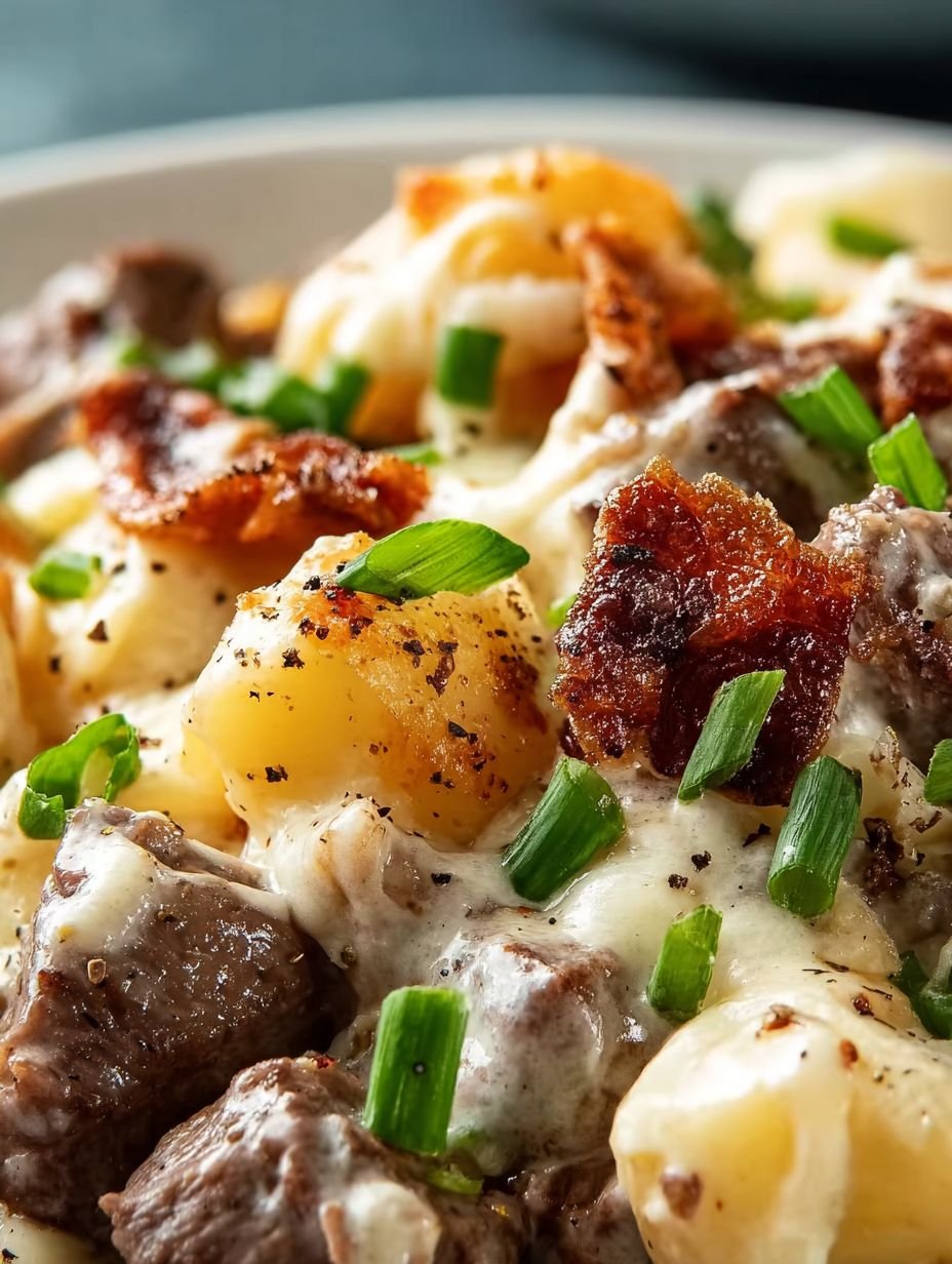Easy Best Creamy Loaded Crispy Beef Potato Bake
