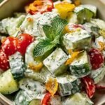 This delightful dish is more than just a side; it’s a vibrant symphony of flavors and textures, proving that healthy eating can be utterly delicious. With crisp cucumbers, juicy cherry tomatoes, and a luxurious creamy ranch dressing brightened by fresh dill, mint, and lemon zest, this salad delivers pure refreshment. Its simplicity makes it perfect for any day, offering a quick and healthy option that never compromises on taste. Don’t just imagine the cool, tangy goodness; whip up this Best Creamy Cucumber Tomato Salad today and experience its refreshing charm for yourself. It’s a truly effortless way to bring a burst of freshness to your table!