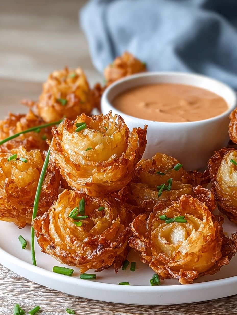 Air Fryer Crispy Mini Blooming Onions & Dip