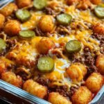 Once the cheese is perfectly melted and bubbly, carefully remove the magnificent casserole from the oven. Let the entire bake rest for a few minutes before serving. This allows the layers to set slightly, making for easier serving. Finally, garnish generously with those tangy dill pickle slices. Serve immediately to enjoy this ultimate comforting dish, packed with classic cheeseburger flavors and satisfying crispy tots.